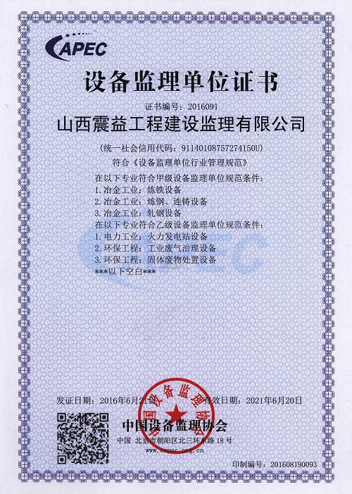 • 設(shè)備監(jiān)理資質(zhì)