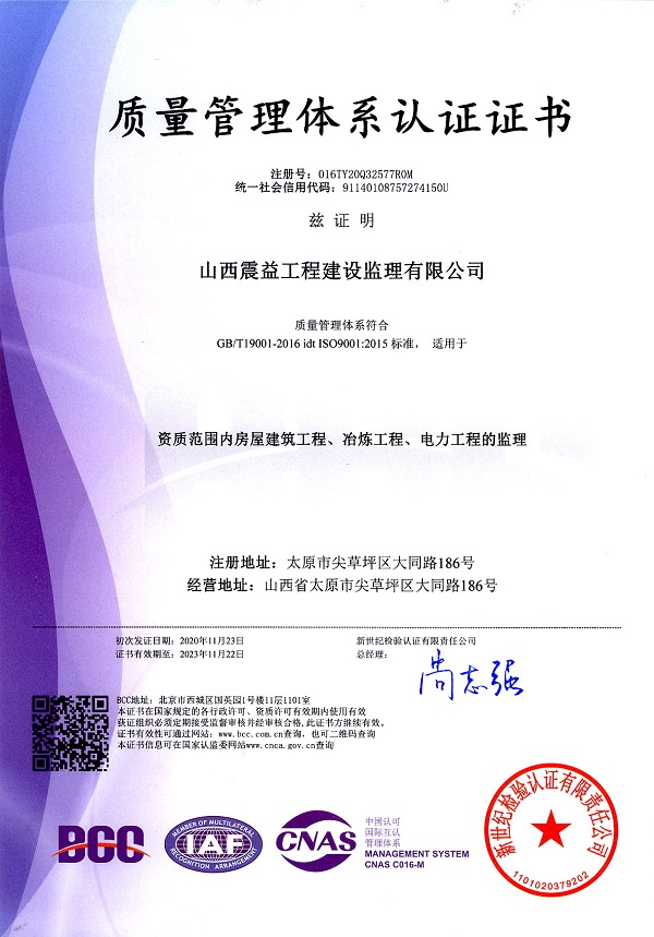 山西震益工程建設(shè)監(jiān)理有限公司【原太原鋼鐵(集團(tuán))工程建設(shè)監(jiān)理有限公司】成立于 1998年4月,注冊資金 600 萬元,是******批準(zhǔn)的具有甲級執(zhí)業(yè)資質(zhì)的綜合性工程咨詢服務(wù)企業(yè),具有冶煉工程、電力工程、礦山工程、房屋建筑工程、市政公用工程等5個(gè)工程監(jiān)理甲級資質(zhì)和設(shè)備監(jiān)理甲級資質(zhì)。主要業(yè)務(wù)涉及冶金、房屋建筑、礦山、電力、市政、機(jī)械、環(huán)保等領(lǐng)域的工程建設(shè)監(jiān)理、設(shè)備監(jiān)理、工程咨詢、造價(jià)咨詢、檢測試驗(yàn)等。公司建立了質(zhì)量ISO9001:2015標(biāo)準(zhǔn)、環(huán)境ISO14001:2015標(biāo)準(zhǔn)、職業(yè)健康******GB/T28001-2011 idt OHSAS 1800:2007標(biāo)準(zhǔn) “三標(biāo)一體”管理體系,是中國設(shè)備監(jiān)理協(xié)會常務(wù)理事、中國冶金建設(shè)監(jiān)理協(xié)會常務(wù)理事和山西省監(jiān)理協(xié)會副會長單位。
